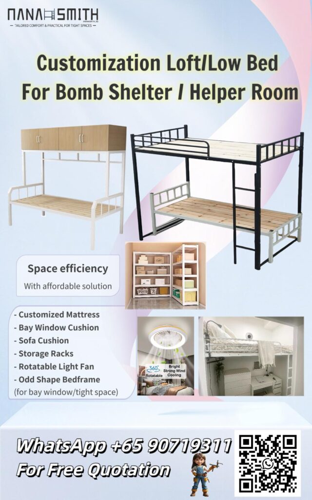Small spaces in Singapore require smart solutions. Nana Smith specializes in customized bunk beds and furniture designed to maximize storage and comfort for bomb shelters, helper rooms, and compact apartments.