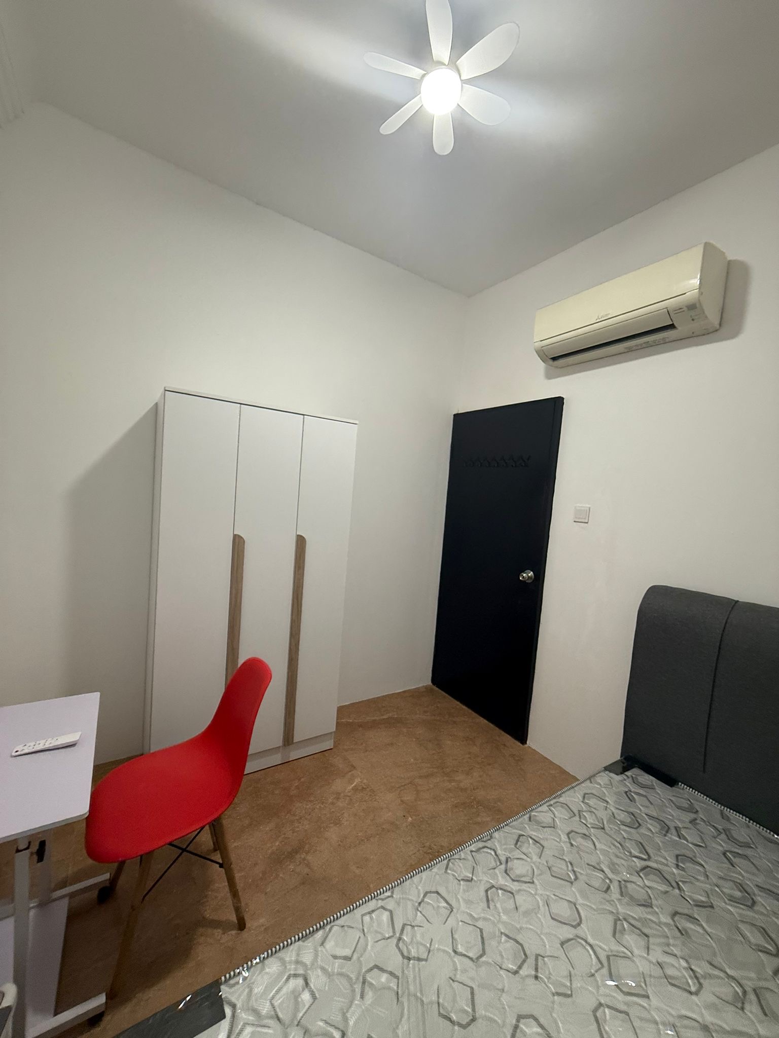 • Fully furnished bed, desk, chair & storage space